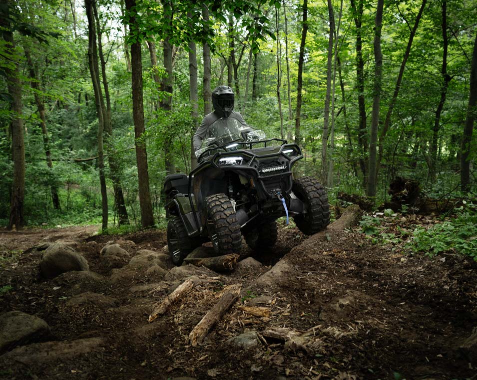 Extensor de Parrilla Delantera, Puerto de Carga de 12 voltios, Precableado para Calentadores de Manos y Pulgares, Puerto de Carga de Batería en Faro Principal, Soporte para Winch Incluido, RIDE COMMAND+ con la Compra del Accesorio, Defensa delantera, Extensión de rack trasero